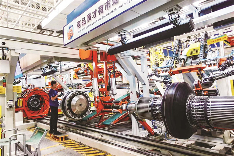 吉林玲珑轮胎有限公司不断加快转型升级步伐,搭建行业领先的数智化工厂,生产的轮胎产品性能均达到国际领先水平。这是在公司成型车间自动化生产线上,大型设备、机械手臂有序运转、精准作业。刘奥琪 摄