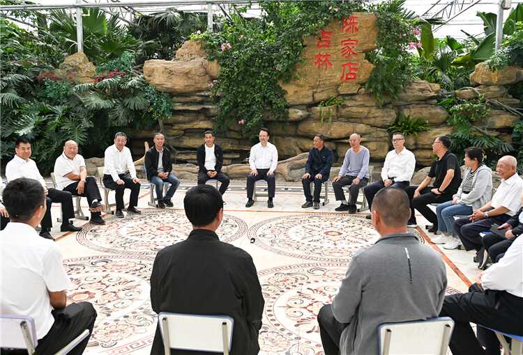9月14日,省委书记景俊海到长春市农安县调研,在陈家店村与种粮大户、农民代表围坐交流。邹乃硕 张野 摄