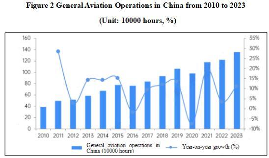 As of the end of 2023, the number of general aviation aircraft (excluding drones) in China is about 5000, an increase of 5% compared to 2022. There are 690 traditional general aviation operators (excluding drones), an increase of 4% compared to 2022.