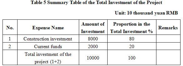 The total investment of the project is 100 million yuan, including the construction investment of 80 million yuan and current funds of 20 million yuan.