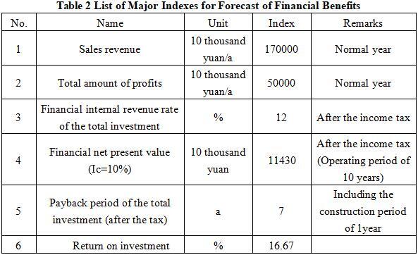 After the project reaches the production capacity, its annual sales revenue will be 1.7 billion yuan, its profit will be 500 million yuan, its investment payback period will be 7 years (after the tax, including the construction period of 1 year) and its return on investment will be 16.67%.