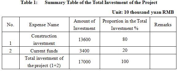 1.3 Total investment of the project and capital raising