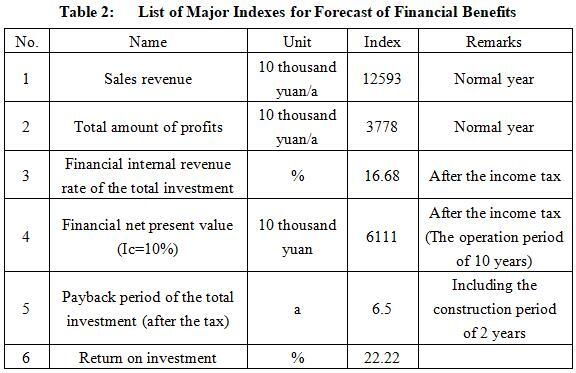 After the project reaches the production capacity, its annual sales income will be 125.93 million yuan, its profit will be 37.78 million yuan, its investment payback period will be 6.5 years (after the tax, including the construction period of 2 years) and its investment profit rate will be 22.22%.
