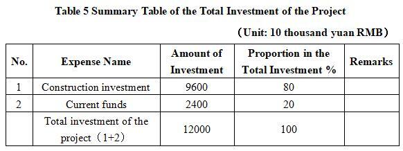 The total investment of the project is 120 million yuan, including the construction investment of 96 million yuan and the current funds of 24 million yuan.
