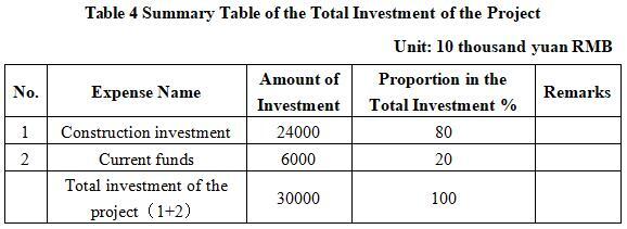 The total investment of the project is 300 million yuan, including the construction investment of 240 million yuan and the current funds of 60 million yuan.