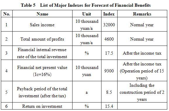 After the project reaches the production capacity, its annual sales income will be 320 million yuan, its profit will be 46 million yuan, its investment payback period will be 8.5 years (after the tax, including the construction period of 2 years) and its investment profit rate will be 15.4%.