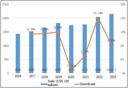 Globally, the API market has gradually recovered its growth after experiencing the impact of the COVID-19 in 2020. Affected by the COVID-19, the global API market size in 2020 has declined compared with 2019, from US$ 182.2 billion to US$ 175 billion, with a decrease of 3.95%; But soon, the market resumed growth from 2021, with the global API market size reaching US$ 204 billion in 2022 and US$ 214.72 billion in 2023.