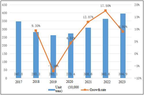 Table 3 Output and Growth Rate of Chemical APIs in China from 2017 to 2023