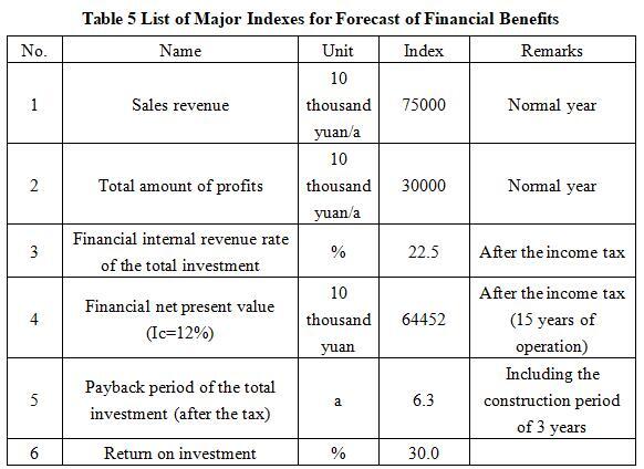 After the project reaches the production capacity, its annual sales income will be 750 million yuan, its profit will be 300 million yuan, its investment payback period will be 6.3 years (after the tax, including the construction period of 3 years), and its investment profit rate will be 30.0%.