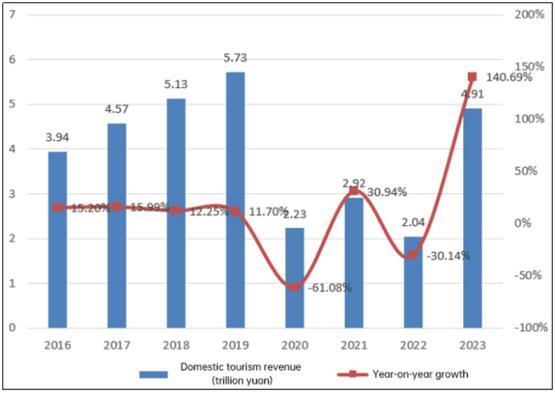 Figure 2 Domestic Tourism Revenue and Growth in China from 2016 to 2023