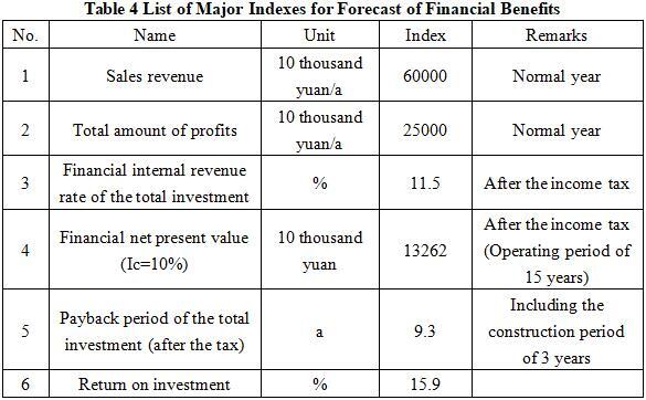 After the project reaches the production capacity, its annual revenue income will be 600 million yuan, its profit will be 250 million yuan, its investment payback period will be 9.3 years (after the tax, including the construction period of 3 years) and its return on investment will be 15.9%.