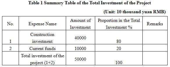 1.3 Total investment of the project and capital raising