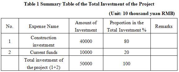 1.3 Total investment of the project and capital raising