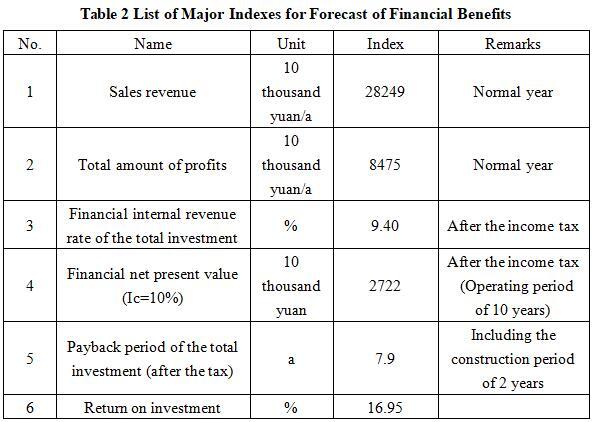 After the project reaches the production capacity, its annual sales revenue will be 282.49 million yuan, its profit will be 84.75 million yuan, its investment payback period will be 7.9 years (after the tax, including the construction period of 2 years) and its return on investment will be 16.95%.
