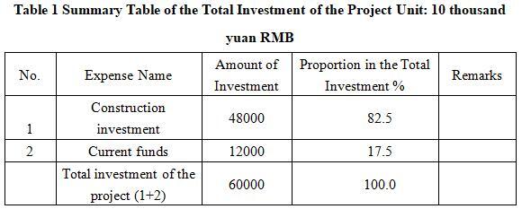 1.3 Total investment of the project and capital raising