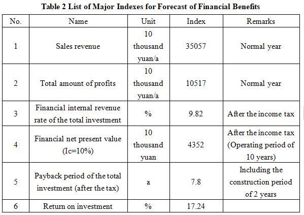 After the project reaches the production capacity, its annual sales revenue will be 350.57 million yuan, its profit will be 105.17 million yuan, its investment payback period will be 7.8 years (after the tax, including the construction period of 2 years) and its return on investment will be 17.24%.