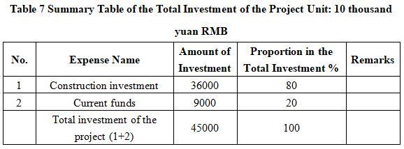 1.3.1 Total investment of the project