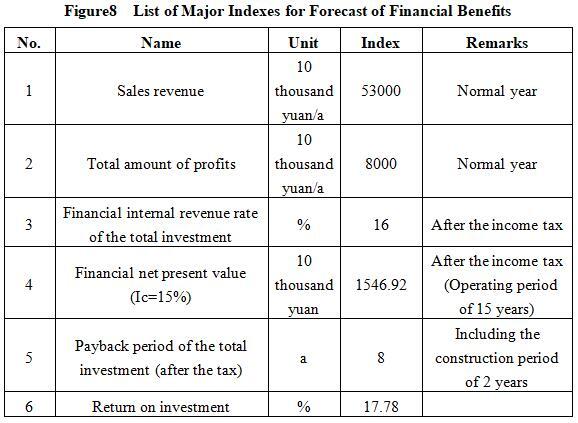 After the project reaches the production capacity, its annual sales revenue will be 530 million yuan, its profit will be 80 million yuan, its investment payback period will be 8 years (after the tax, including the construction period of 2 years) and its return on investment will be 17.78%.