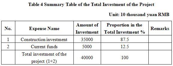 The total investment of the project is 400 million yuan, including teh construction investment of 350 million yuan and current funds of 50 million yuan.