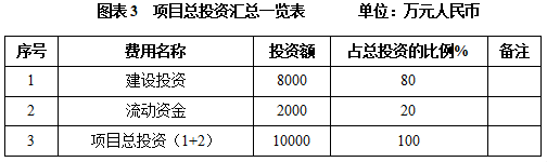 本项目总投资为10000万元,其中:建设投资8000万元,流动资金2000万元。