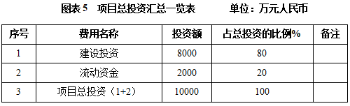 本项目总投资为10000万元,其中:建设投资8000万元,流动资金2000万元。
