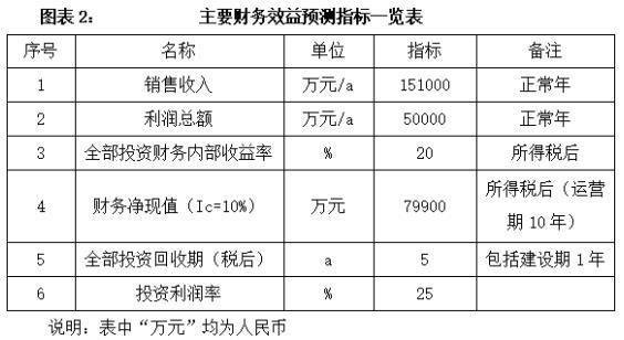 项目建成后,年销售收入151000万元,利润50000万元,投资回收期5年(税后,含建设期1年),投资利润率25%。