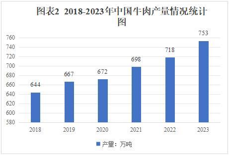 随着肉牛养殖技术的提高和生产管理的改善,中国牛肉产量不断增长。中商产业研究院发布的《2025-2030年中国肉牛养殖行业前景预测与战略投资机会洞察研究简报》显示,2023年全国牛肉产量753万吨,较上年增长4.8%。