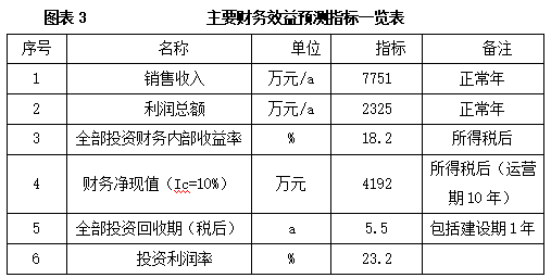 项目达产后,年销售收入7751万元,利润2325万元,投资回收期5.5年(税后,含建设期1年),投资利润率23.2%。