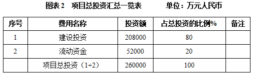 本项目总投资为260000万元,其中:建设投资208000万元,流动资金52000万元。
