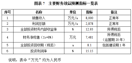 项目达产后,年销售收入8,000万元,利润2,878万元,投资回收期8.1年(税后,含建设期1年),投资利润率15.15%。