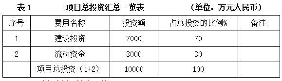 项目总投资10000万元,其中建设投资7000万元。