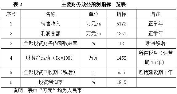 项目达产后,年销售收入6172万元,利润1851万元,投资回收期6.5年(税后,含建设期1年),投资利润率18.5%。