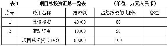 项目总投资50000万元,其中建设投资40000万元。
