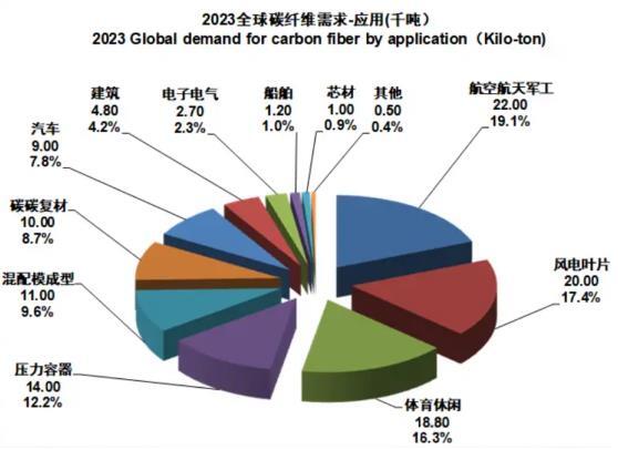 2023年全球碳纤维的需求量为115,000吨,对比2022年的135,000吨,下降了14.8%。