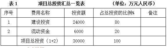 项目总投资30000万元,其中建设投资24000万元。