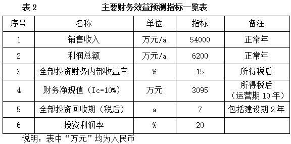 项目达产后,年销售收入54000万元,利润6200万元,投资回收期7年(税后,含建设期2年),投资利润率20%。