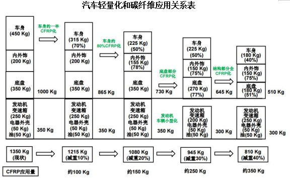 轻质新材料的应用是汽车实现轻量化的关键。为实现轻量化,世界各大汽车生产商和材料生产厂家一直致力于轻量化材料的研发,轻量化材料应用的多少已经成为衡量汽车生产技术和新材料开发水平的重要标准之一。目前用于汽车的最有效的轻量化新材料是碳纤维材料,它同时兼具了碳材料的固有特性和纺织纤维的柔软性两种属性,质量比金属铝轻,但强度却高于钢铁,并且具有安全、耐久、耐腐蚀、高模量、美观等特性。