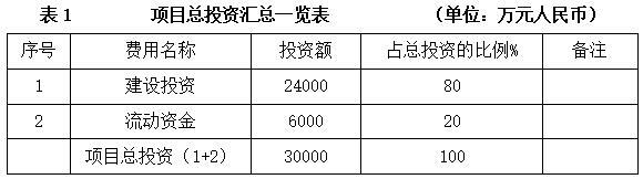 项目总投资30000万元,其中建设投资24000万元。