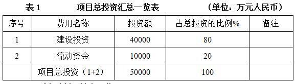 项目总投资50000万元,其中建设投资40000万元。