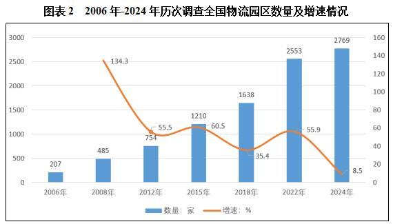 根据中国物流与采购联合会8月22日公布《第七次全国物流园区调查报告》,全国物流园区总数为2769家,与第六次调查的2553家相比,增长了8.5%,总体上保持稳定增长态势。并且,处于运营和在建状态的物流园区占比进一步提升。