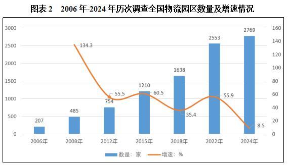 根据中国物流与采购联合会8月22日公布《第七次全国物流园区调查报告》,全国物流园区总数为2769家,与第六次调查的2553家相比,增长了8.5%,总体上保持稳定增长态势。并且,处于运营和在建状态的物流园区占比进一步提升。