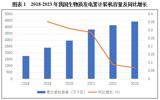 在我国生物质资源储量丰富、政策支持及社会用电量上升等利好因素推动下,我国生物质发电行业正朝着规范化、市场化方向发展,装机规模持续上升。数据显示,其累计装机容量已由2018年的1781万千瓦上升至2023年的4414万千瓦,年复合增长率达到16.33%。随着生物质发电装机规模上升,其发电量也在持续增长,由2018年的906亿千瓦时上升至2023年的1980亿千瓦时,年复合增长率达到13.92%。相较于风电和光伏发电,热电联产受气候等自然因素的影响较小,能够持续稳定地供应能源。尤其是在全球变暖日益严重的背景下,世界各国对温室气体排放更加严格,可再生能源的开发利用和能效的提高已成为各国减排的主要途径。传统化石燃料发电系统的平均综合效率多年来一直维持在35%~37%的较低水平,相比之下,热电联产系统的综合效率远高于传统化石燃料发电系统,其效率可以达到60%~80%,甚至最先进的热电联产系统的综合效率能超过90%。除了显而易见的效率优势,热电联产还具备减少温室气体排放量、降低热电网输送系统的投资、增强能源供给稳定性等价值。未来,在“双碳”战略目标和能源结构调整的趋势下,我国生物质发电仍然具有巨大的发展前景。随着相关利好政策持续推行、生物质资源利用率提升和商业模式逐渐成熟等,我国生物质发电行业规模将进一步扩大。