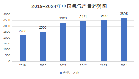 在政策和市场的双重推动下,中国已成为世界上最大的制氢国。截至2023年底,全国氢气产能约4900万吨/年,产量约3500万吨,同比均增长约2.3%。2024年中国氢气产量达到3695万吨。