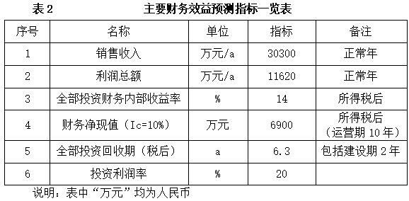 项目达产后,年销售收入30300万元,利润11620万元,投资回收期6.3年(税后,含建设期2年),投资利润率20%。