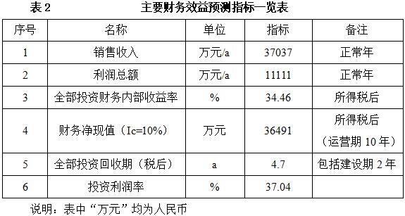 项目达产后,年销售收入37037万元,利润11111万元,投资回收期4.7年(税后,含建设期2年),投资利润率37.04%。
