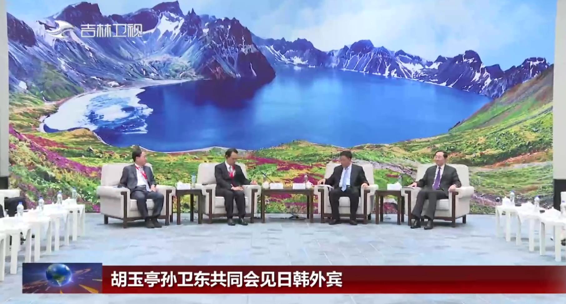 10月26日,省委副书记、省长胡玉亭,外交部副部长孙卫东在长春共同会见日本驻华大使金杉宪治,中日韩合作秘书处首任秘书长、韩国前驻印度大使申凤吉,中日韩合作秘书处秘书长李熙燮等参加纪念中日韩合作二十五周年研讨会的重要嘉宾一行。副省长杨安娣、省政府秘书长刘化文参加会见。