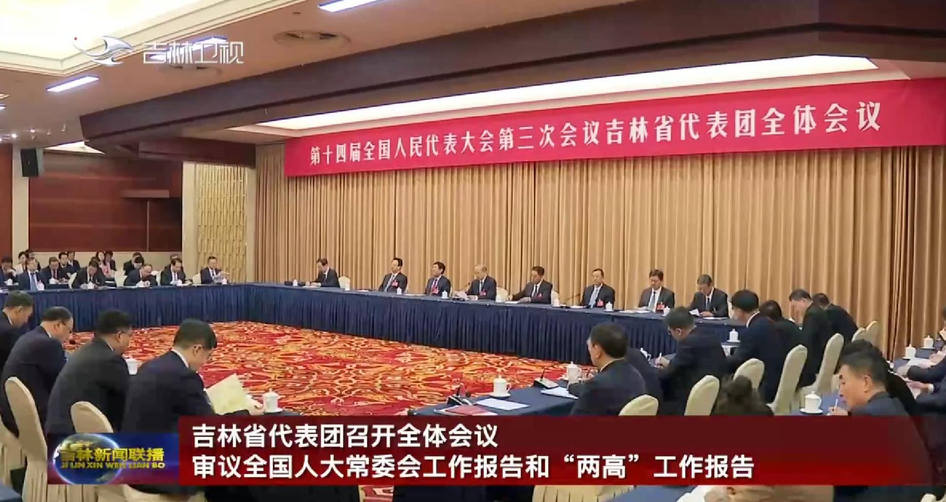 3月10日上午,出席十四届全国人大三次会议的我省代表团召开全体会议,审议全国人大常委会工作报告、最高人民法院工作报告、最高人民检察院工作报告。吉林省代表团团长黄强参加审议并发言。代表团副团长胡玉亭,巴音朝鲁、雒树刚、景俊海参加审议。