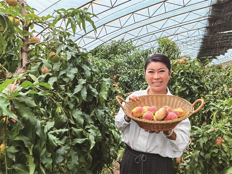 曙光生态园内色泽鲜艳、个大圆润的富硒蟠桃散发着果香。 孙池 摄