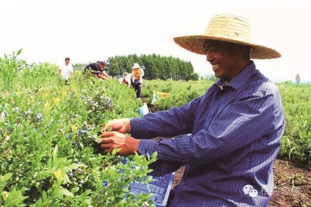 农民们正在采摘蓝莓,难掩丰收的喜悦。
