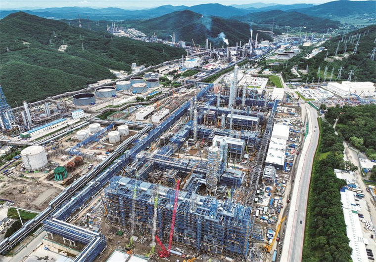 中国石油吉林石化公司炼油化工转型升级项目是吉林石化推进炼化业务由“燃料向化工、化工向材料、材料向中高端”转型的重要举措。对于吉林省石化产业和经济社会发展、推动吉林全面振兴取得新突破,具有重要意义。图为120万吨/年乙烯装置建设现场。